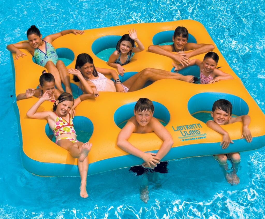 Shop for Floats and Toys from PoolToySource.com! Your kids and their friends will have a blast on the Splashnet Xpress Labyrinth Inflatable Island. This inflatable island is large enough for nine kids or several adults. Whoever is on board will have the chance to soak up some rays or jump into the pool and reemerge through the nine port holes in the island. Heavy-gauge PVC material will hold up to rough play. Order the Labyrinth Island today and add a new dimension to the pool this summer.
